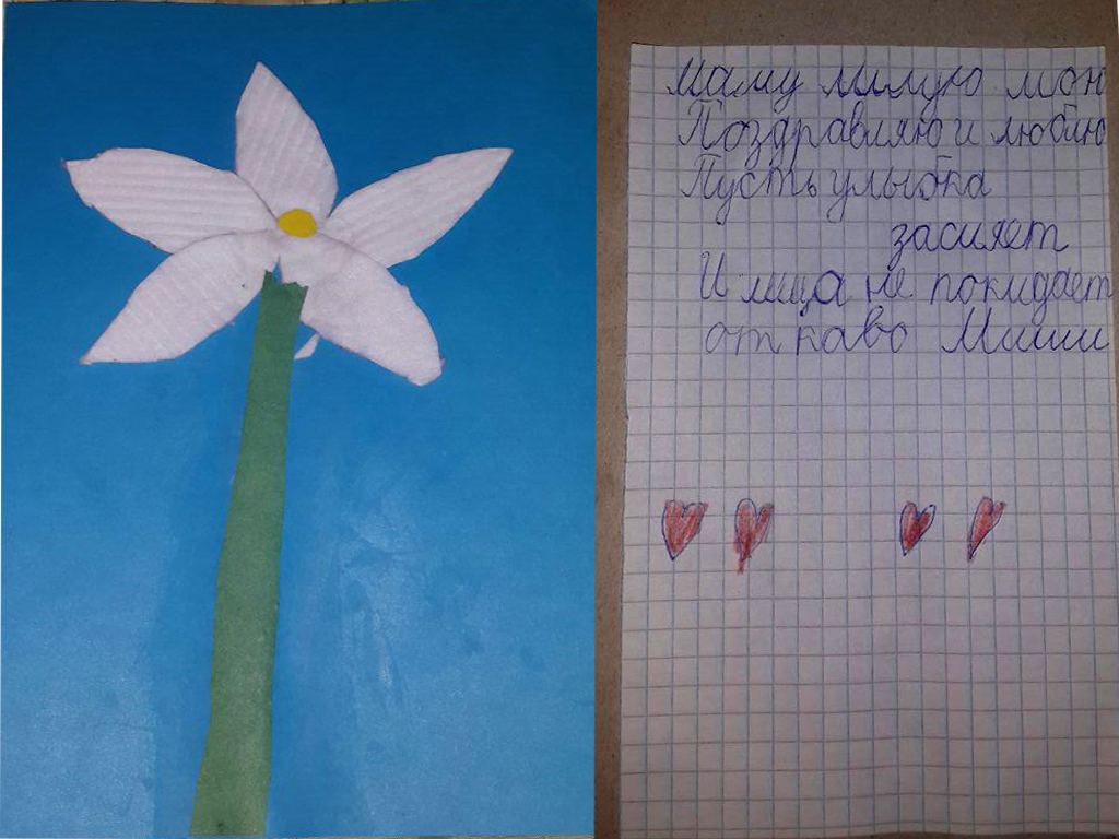 Мое утро началось с того, что постучались ко мне в спальню и попросили выйти в зал. Вышла, а там стояли мои мужчины, с подарками, цветами... спросонок я сразу и не поняла кто с чем пришел, супруг смог достать даже вино, которое привезли из моего родного города?. Больше всех подарков, конечно же, понравились подарки моих самых маленьких мужчин. Сколько души они в них вложили. Это самые бесценные подарки для любой мамы. Остальные подарки меня тоже обрадовали. Напоздравлялись , позавтракали и легли спать)